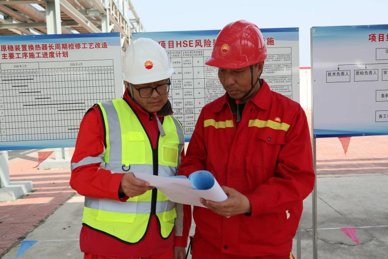 39小时战书·不停滞作答。针对检修中发现的技术难题,公司迅速组建技术团队,第一时间响应处置。在湿气汇管管线施工过程中,发现管廊架起后形成倒“U”型跨接,且未设置低点排液阀门,存在运行隐患。检修组立即组织研究解决措施,确定兼具施工效率优、运行效果佳、员工操作便捷的优化方案,原本39小时的处理计划,在26小时内迅速解决完成,将风险隐患消除在萌芽状态。同时,技术人员统筹优化工艺,在工艺管线上增设预留口,为后续换热器置换与排污提供便利,进一步提升装置运维灵活性。