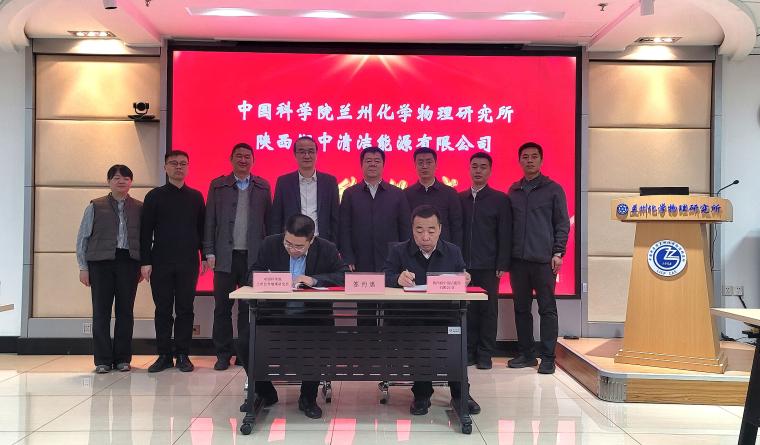 兰州化物所副所长石峰与润中清洁能源公司总工程师邹正刚代表双方签署了产学研合作协议。