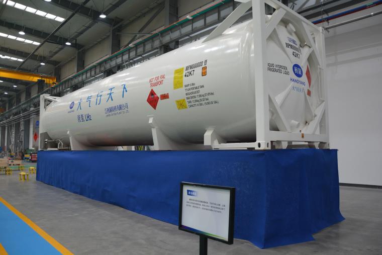 聚焦氢能产业链中游储运环节,杭氧自主研发的大型液氢储罐吸引记者注意。据介绍,该液氢储罐为江氧多式联运液氢罐箱,采用40英尺标准集装箱框架,主要用于液氢的海上运输、公路运输以及终端的液氢存储。其绝热性能指标达到了国内领先、国际先进水平,无损存储时间最长可达50余天,为未来实现液氢全球贸易提供了坚实保障。