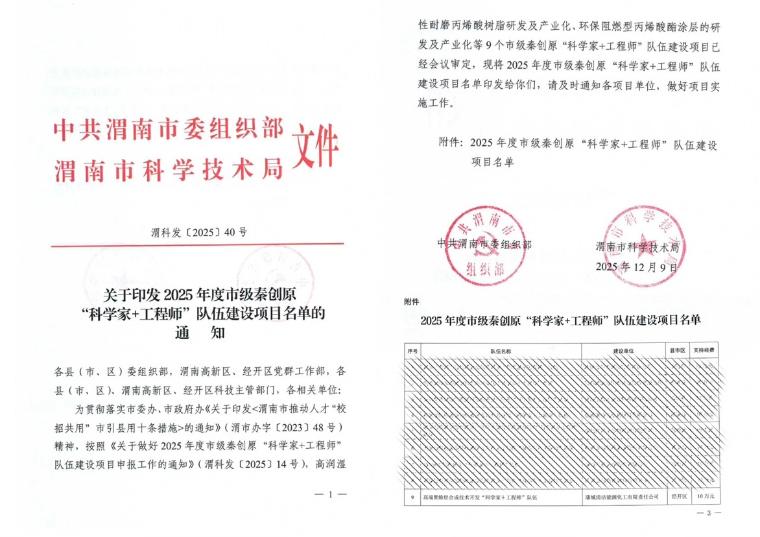 近日,由陕煤蒲洁能化公司牵头组建的“高端聚烯烃合成技术开发‘科学家+工程师’队伍”经过严格评审,成功入选2025年度陕西省渭南市秦创原“科学家+工程师”队伍。