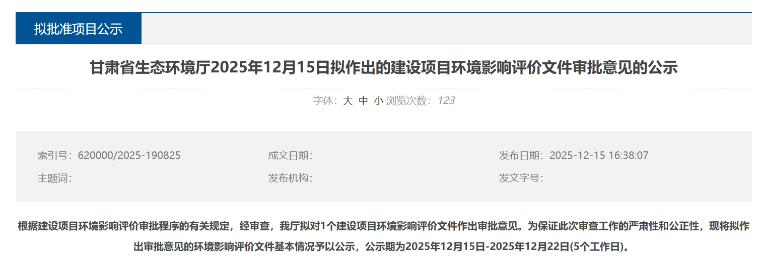 近日,甘肃省生态环境厅拟对甘肃巨化新材料有限公司高性能氟氯新材料一体化提升项目环境影响评价文件作出审批意见。